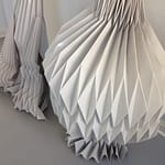 Siden jeg har lukket butikken er der sket mange spændende ting. Jeg har været så heldig at få et arbejdslegat fra Statens Kunstfond, som giver mig mulighed for at fordybe mig i eksperimenter med plissering – en fordybelse som jeg længe har drømt om. Det er helt vidunderligt at kaste sig ud i eksperimenter og se, hvorhen det bringer en.