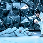 Wibe Wern skrev i Berlignske Tidende d. 10.5. 2014 bl.a.: “……….Højt oppe på en balkon skrider skikkelser afsted, som iklædt Charlotte Østergaards fantasifulde kostumer ligner takkede krystaller, og den lysende krystal i deres hænder minder os om lyset i mørket………”