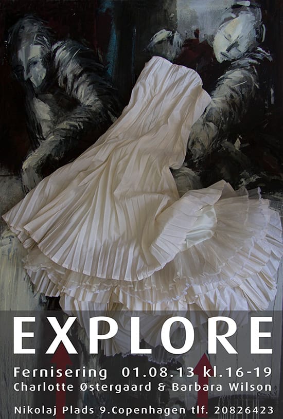 Explore er et møde mellem billedkunstner Barbara Wilson (BW190) og beklædningsdesigner Charlotte Østergaard (CØ018). Explore er en intregration af disse to kunterers værker; maleri og unika kjoler.